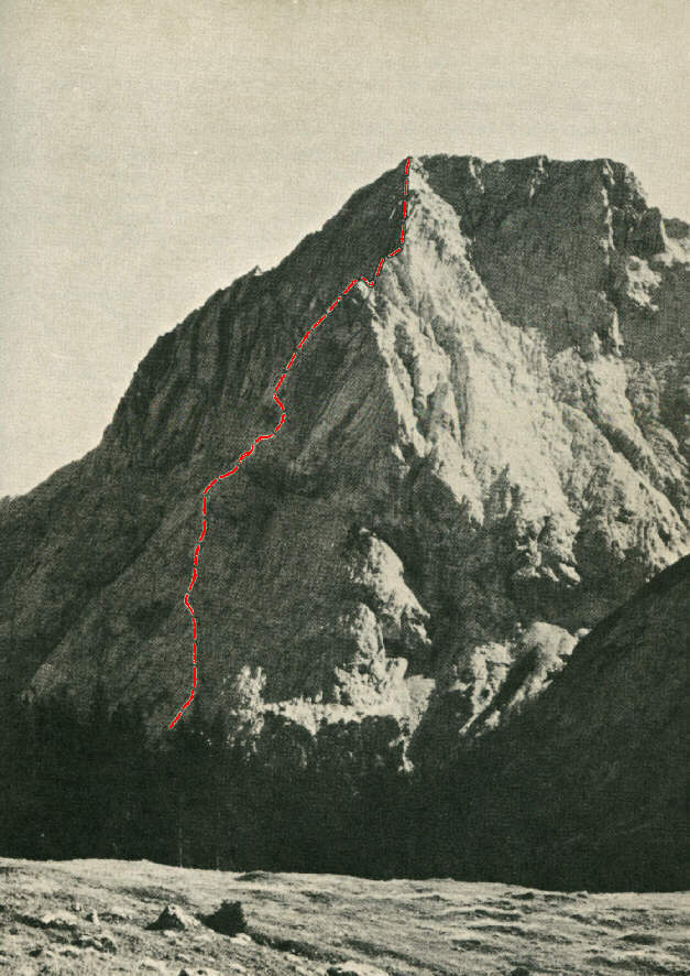 Knöpfler anläßlich der Erstdurchsteigung der W-Wand, 1917. Unterer Teil