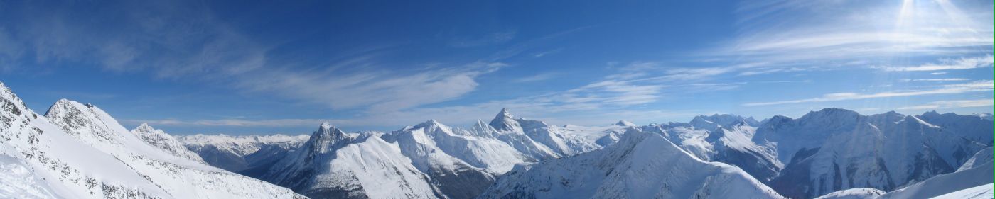 Herrlicher Blick vom Mt. Swanzy Gipfel auf den Hauptkamm der Selkirks: McDonald, Eagle Peak, Uto Peak, Sir Donald, Terminal, Mt. Fox, Mt Jupiter und, und, und.....